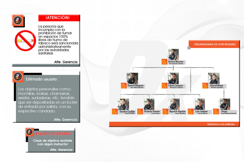Diseño y producción de señalización varias para club Cliente: Dxgym